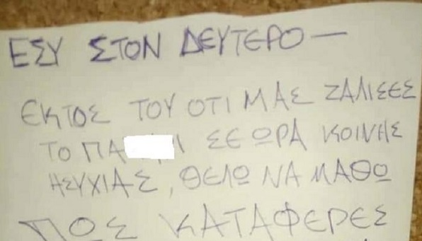 Ο κάτοικος του β ορόφου θα πρέπει να τους έχει τρελάνει όλους με αυτά που ακούει, και για το λόγο αυτό του έγραψαν και το σημείωμα.