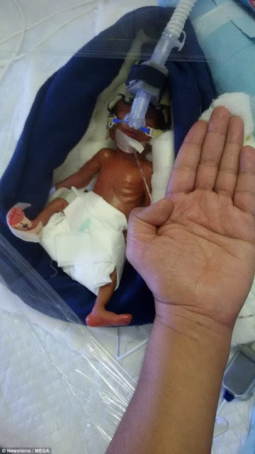 Η Μανούσι γεννήθηκε 12 εβδομάδες πρόωρα και ζύγιζε μόλις 400 γραμμάρια. Το πόδι της ήταν στο μέγεθος του αντίχειρα τ...