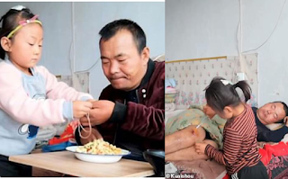Από τότε η μικρή άρχισε να φροντίζει μόνη της τον πατέρα της στο σπίτι τους στην επαρχία Νινγκσιά παρά το γεγονός ότι ήταν μόλις ένα μικρό κοpιτσάκι.