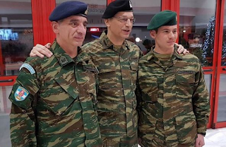 Σε μια από τις επισκέψεις που πραγματοποίησε ο ΑΓΕΣ σε Σχηματισμούς, Μονάδες και Φυλάκια του Δ΄ Σώματος Στρατού ενόψει των εορτών των Χριστουγέννων και της Πρωτοχρονιάς χθες (21/12/2017) o ΑΓΕΣ βρέθηκε δίπλα σε έναν πατέρα Εθνοφύλακα και τον υιό του που υπηρετεί ως πρασινοσκούφης οπλίτης και έβγαλε μαζί τους μια πολύ συγκηνητική φωτογραφία.